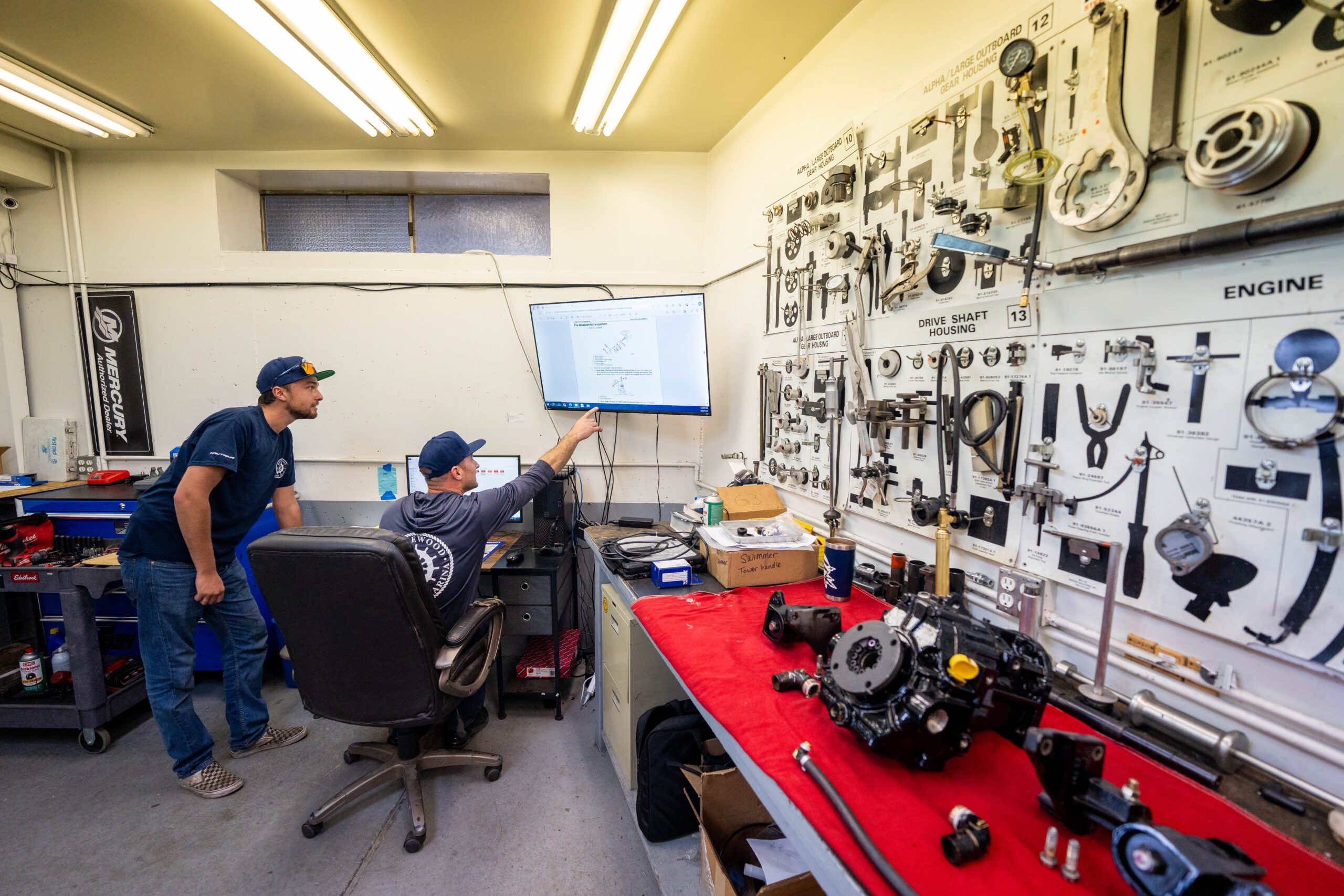 Our service department works on a variety of boat repairs and maintenance issues including 20/50/100 hour services, propeller repair, bimini repair, cover repair, stereo issues, trim sender, shift cables, dual battery swatches and more. As the only PCM premiere dealer on Lake Tahoe our certified technicians are well equipped to ensure your boat’s performance. Our hourly service rates vary depending on engine type and service performed. View some of our typical service rates and get an estimate on the price by checking our service rate sheet.